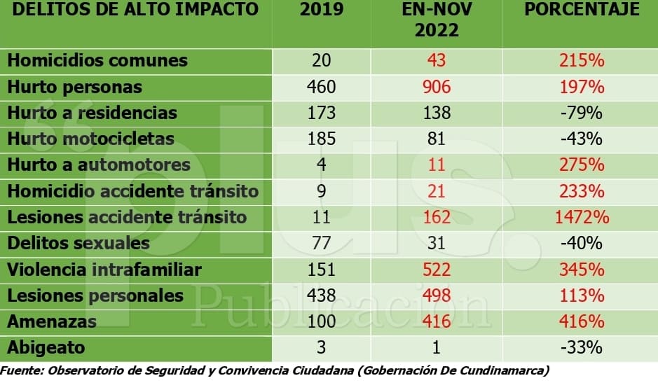 El 20 de agosto de 2022, va a hacer un año, el comandante del Distrito 2 de Policía de Girardot confirmó en rueda de prensa el incremento en los casos de homicidio, lesiones personales y hurto a personas, comparado en el mismo periodo del 2021.