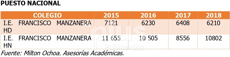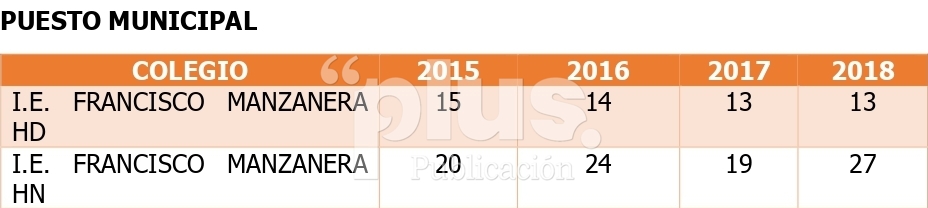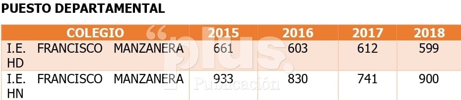 Aunque con pequeñas mejorías, haciendo un comparativo con colegios oficiales de Girardot, por ejemplo, con la Institución Educativa Atanasio Girardot, que se encuentra completamente derruida y no se le ha entregado un solo peso para su restauración, esta se ubica seis lugares arriba de la clasificación en comparación con el Megacolegio Francisco Manzanera, jornada mañana. (Cifras del 2018).