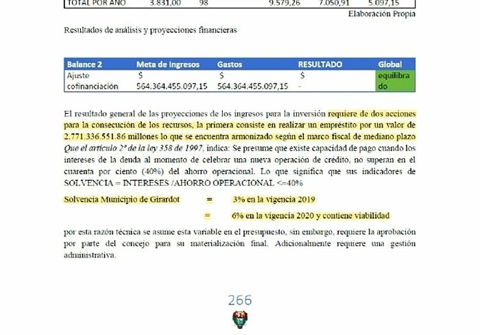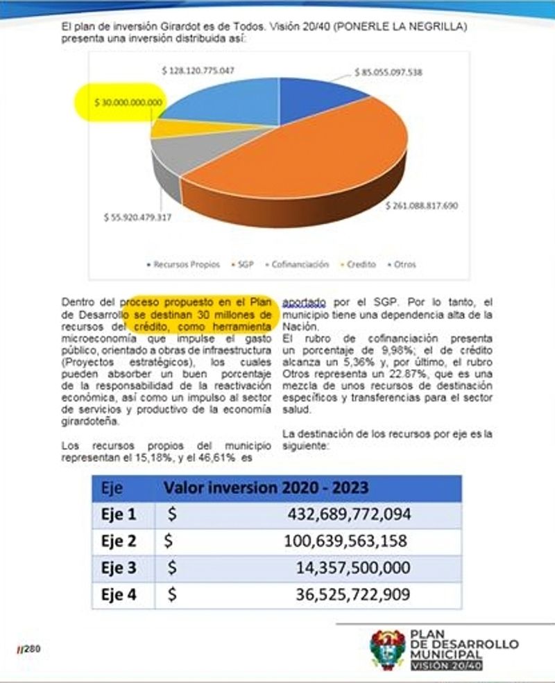 El cuatro de mayo de este año publicamos en la madrugada una nota informando que dentro del documento «Bases del Plan Municipal de Desarrollo, Girardot es de Todos» 2020-2024, se planteaba un empréstito por $2 771 336 551,86.